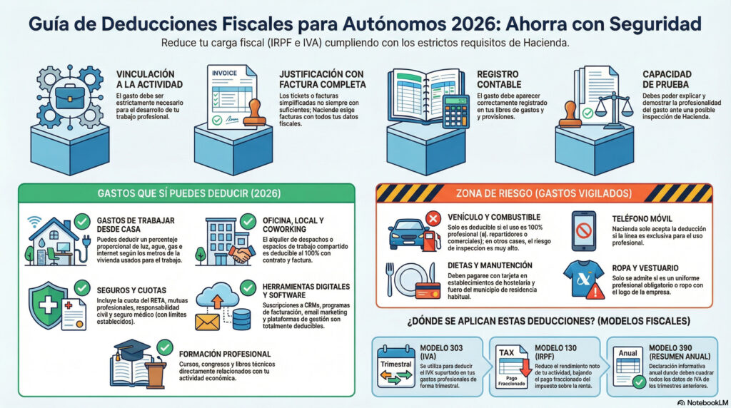 Deducciones para autónomos 2026: qué puedes desgravar y qué no